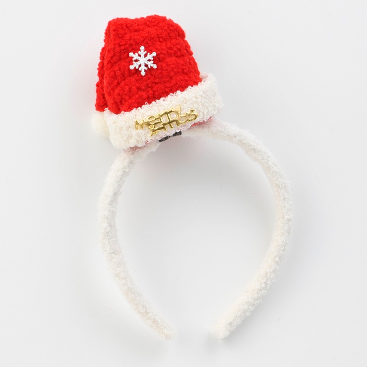 もこもこのカチューシャに小さなサンタ帽が付いたカチューシャです。