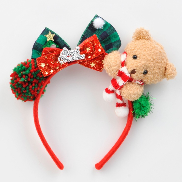 かわいいリボンにクリスマス感たっぷりのクマさん付きカチューシャです。