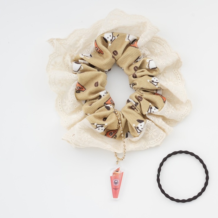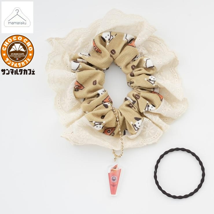 サンマルクカフェデザインのシュシュとゴムのセットです。