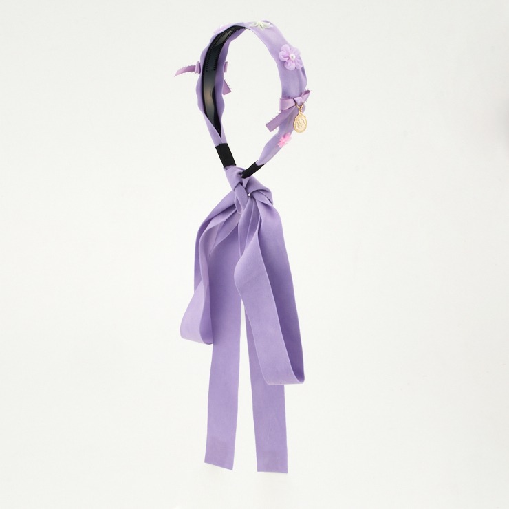 リボンを髪の後ろやあご下に結んだり、様々なアレンジができます。