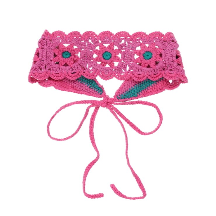 かぎ編み風のデザインが可愛いバブーシュカです。