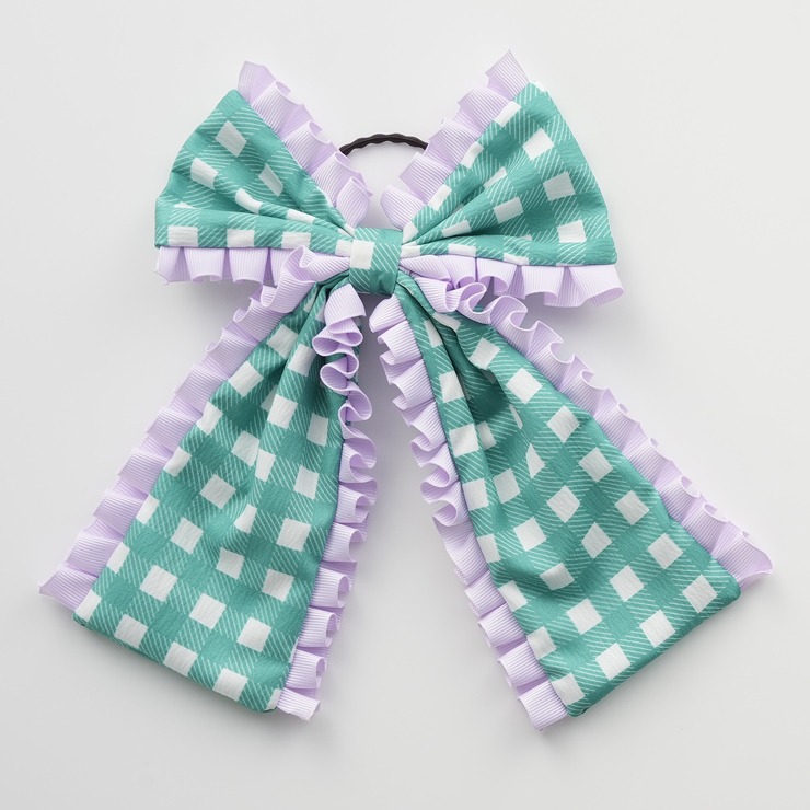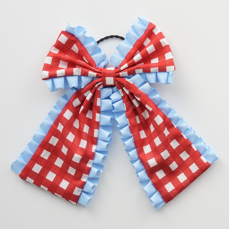 ポップなカラーで、大きめなリボンがコーデの華やかなワンポイントにぴったりです。