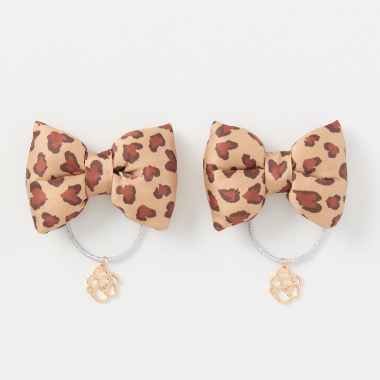 ヒョウ柄のぷっくりリボンが可愛いポニー2点セットです。
