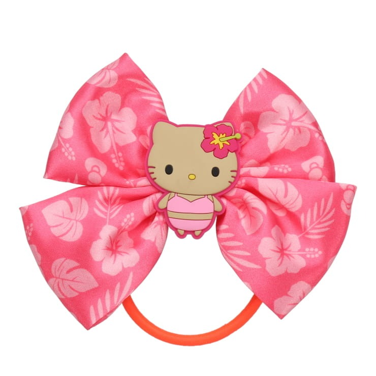 トレンドのハイビスカス柄にキティのフェイスが映えるデザイン。ボリュームのあるリボンで、ヘアアレンジ主役になるサイズ感です。