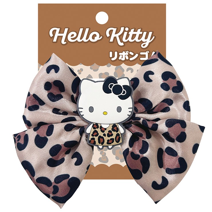 トレンドのレオパード柄にキティのフェイスが映えるデザイン。ボリュームのあるリボンで、ヘアアレンジ主役になるサイズ感です。