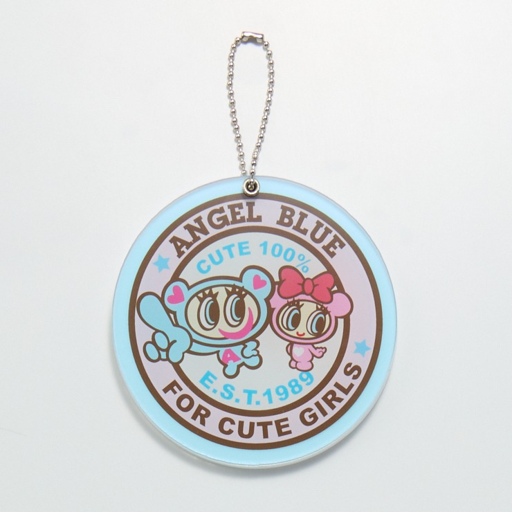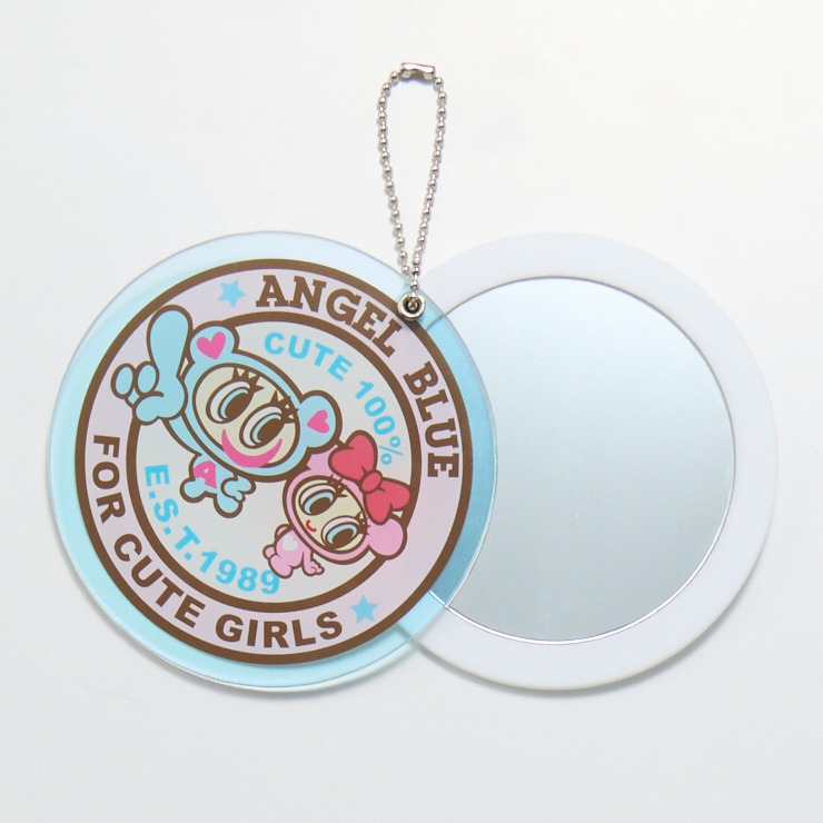 使いやすい丸形ミラーに、ナカムラくんとキラリちゃんを並べた王道デザイン。裏面にもロゴ入りです。