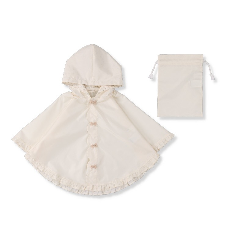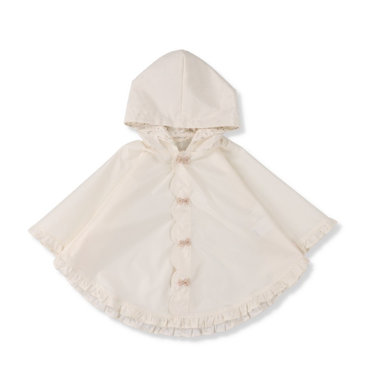 フード裏の花柄プリントがかわいいレインポンチョです。