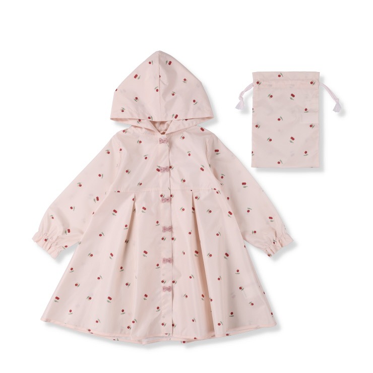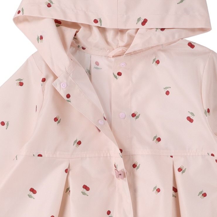 さくらんぼの総柄がかわいいレインコートです。