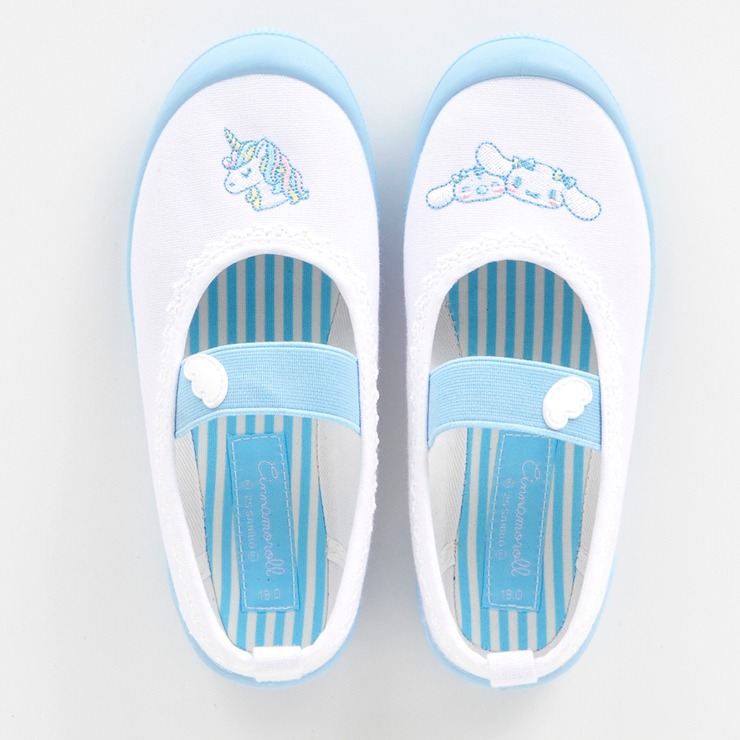 シナモロールとミルクちゃんが左右に刺繍されたバレーシューズ。中敷きにはストライプ柄が入っており見た目も可愛くし仕上がってます。