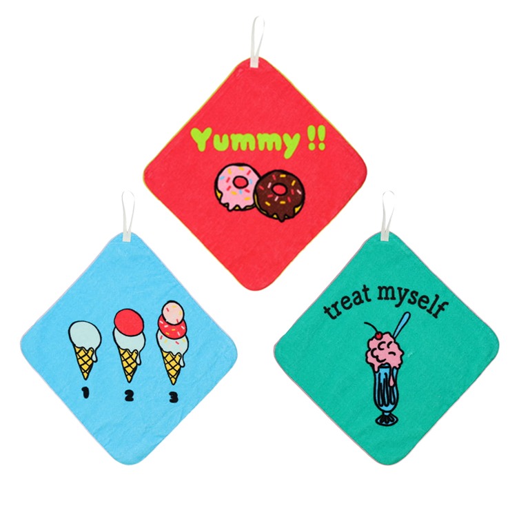 スイーツ柄ループ付きタオル3枚セット