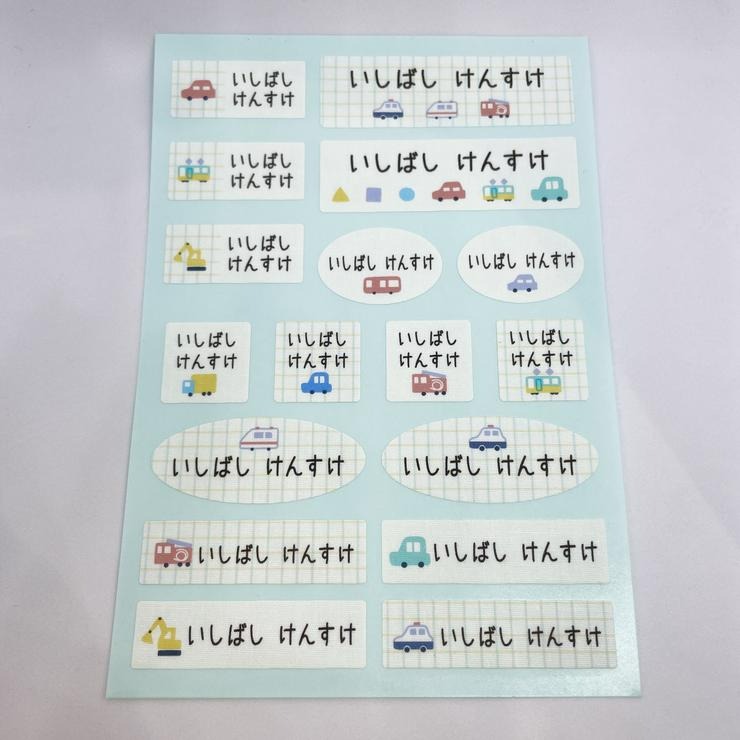 かっこいい乗り物のイラスト付きでお子様の持ち物へのお名前付けにピッタリです。