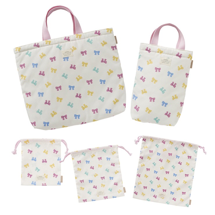 レッスンバッグ・シューズバッグ・巾着S・M・Lでの展開なので一式揃えて合わせられます。内側には名前が書けるネームタグが付いています。