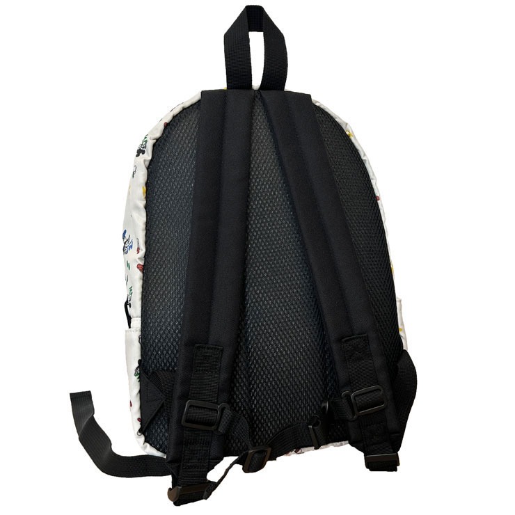 「ミッキーマウス」ペイント柄とOUTDOORブランドがコラボした定番人気形状のデイパックです。フロントには大き目のファスナー付きポケット、両サイドにはペットボトルなどが入るオープンポケットが付いています。内側には小物が入れられるオープンポケットが付いています。背面は通気性に優れたメッシュ素材を使用し、クッション入りで肩の負担を軽減します。チェストベルトが付いているので肩がずれ落ちにくいです。