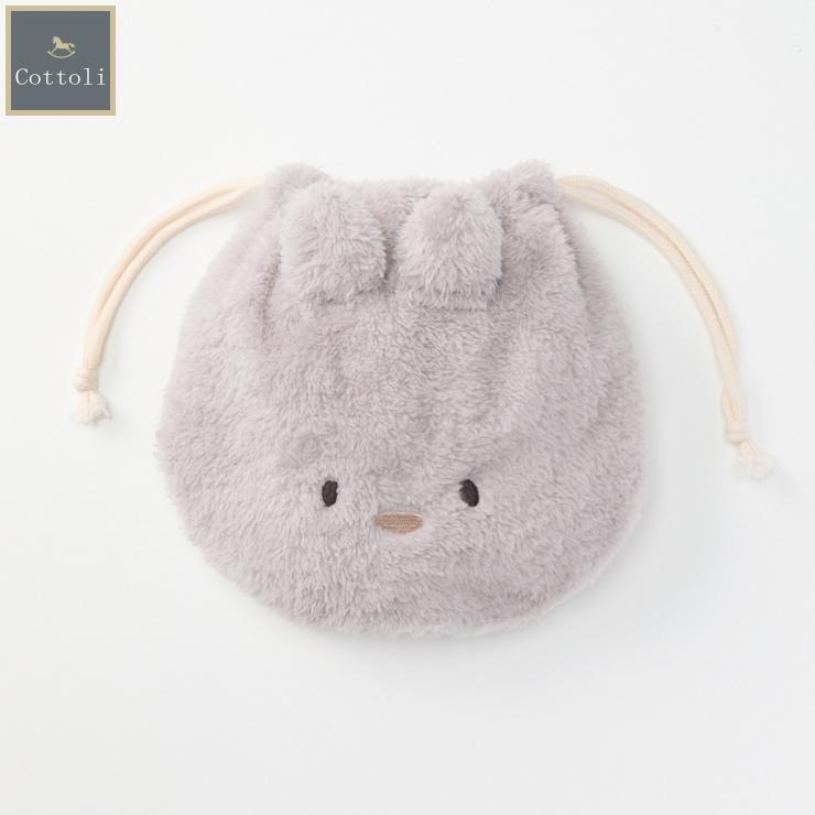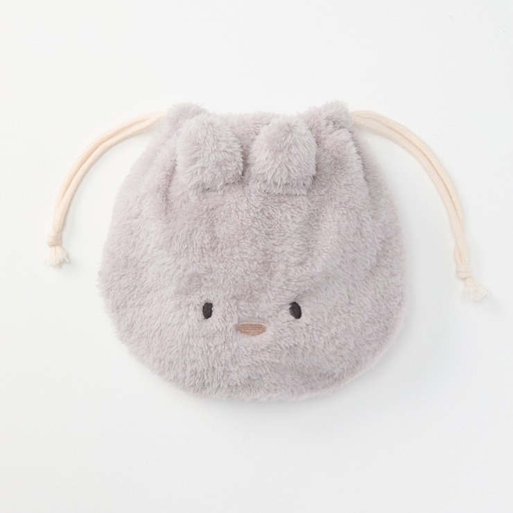 もこもこ生地がかわいいウサギモチーフの巾着です。