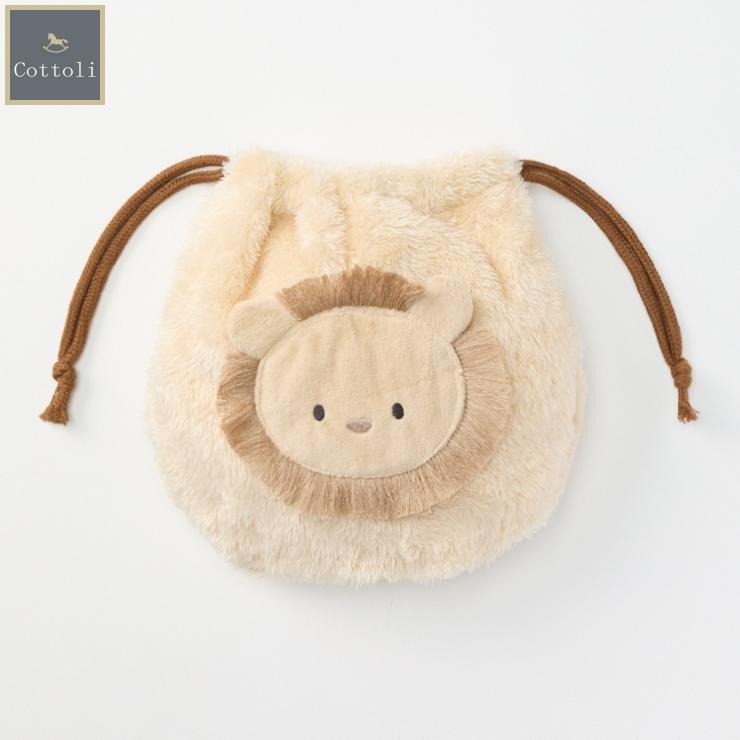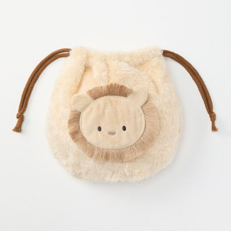 もこもこ生地がかわいいライオンモチーフの巾着です。