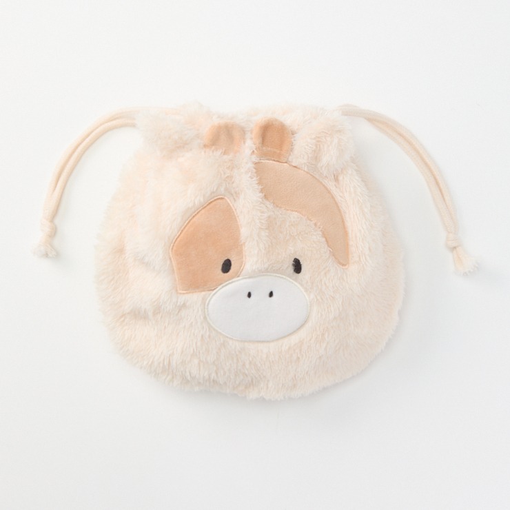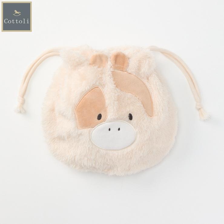 もこもこ生地がかわいいキリンモチーフの巾着です。