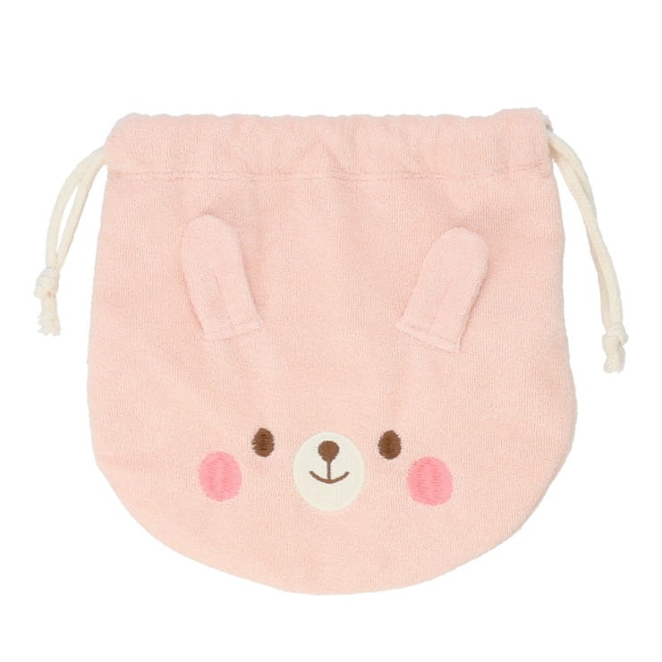 肌触りの良いパイル素材で口のひもを絞ればまあるい形のうさぎがとってもかわいい♪