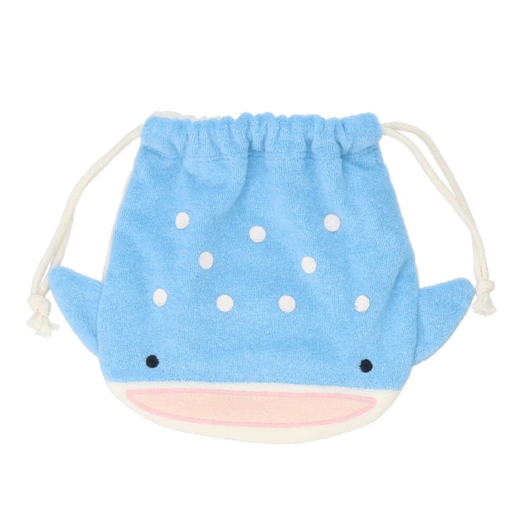 肌触りの良いパイル素材のジンベイザメの巾着です。