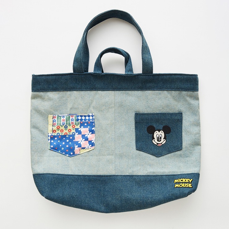 パッチワーク風のプリントとミッキーマウスの刺繍がかわいい◎