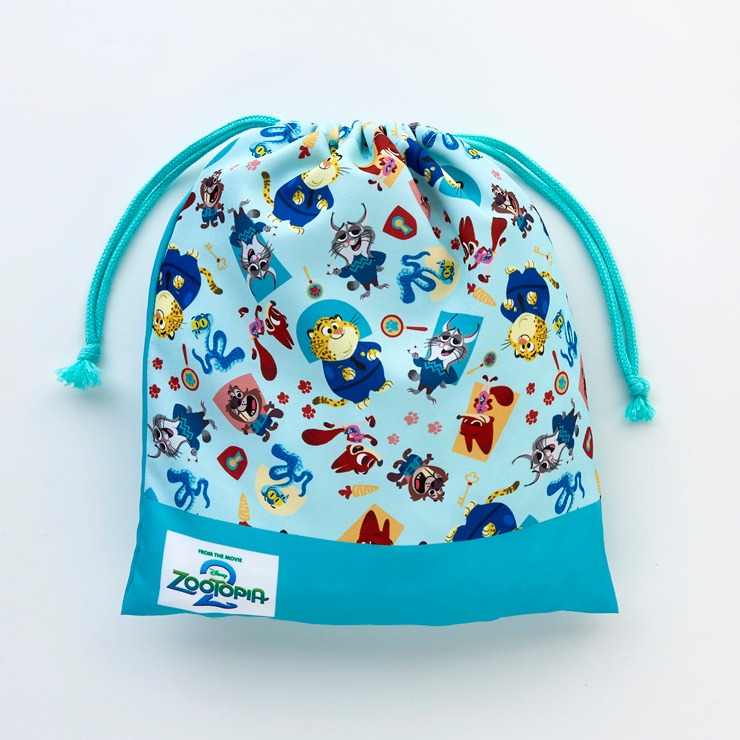 12月5日に公開されるディズニー映画「ズートピア2」のキャラクターニックがデザインされたキンチャク。キンチャクS、Lとレッスンバッグ、シューズバッグの展開なので一式揃えて合わせられます。内側には名前が書けるネームタグが付いています。
