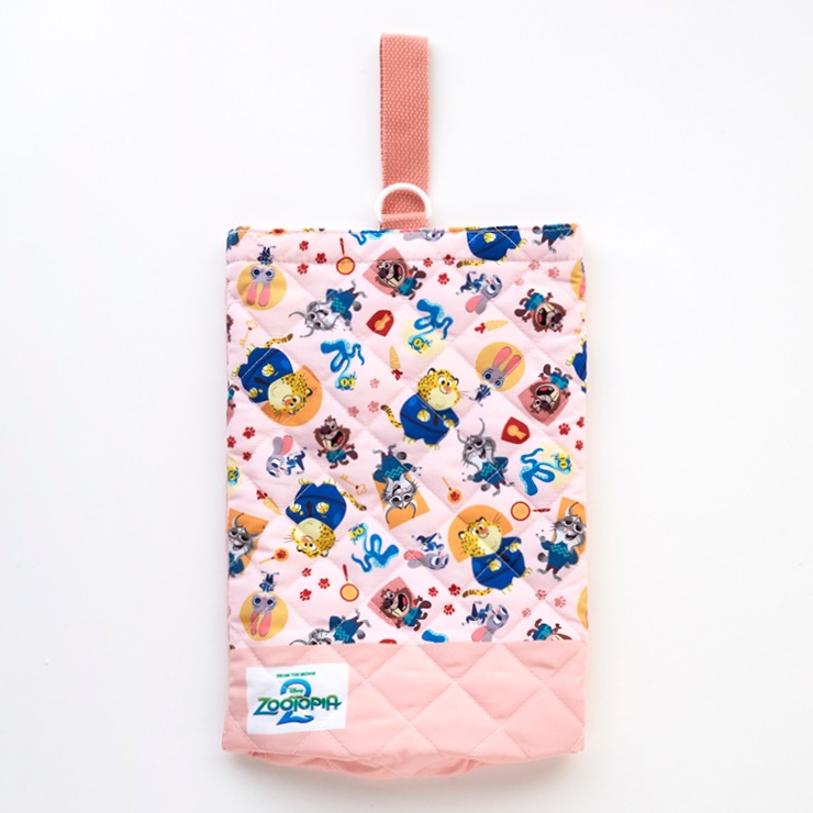 12月5日に公開されるディズニー映画「ズートピア2」のキャラクタージュディがデザインされたシューズバッグ。温かみのあるキルティング素材で、キンチャクS,M,Lとレッスンバッグの展開なので一式揃えて合わせられます。名前が書けるネームタグが付いています。