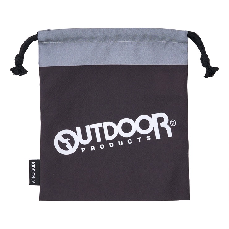OUTDOOR PRODUCTSのキンチャク。キンチャクM、Lとランチキンチャク、レッスンバッグ、ナップサック、シューズバッグの展開なので一式揃えて合わせられます。内側には名前が書けるネームタグが付いています。