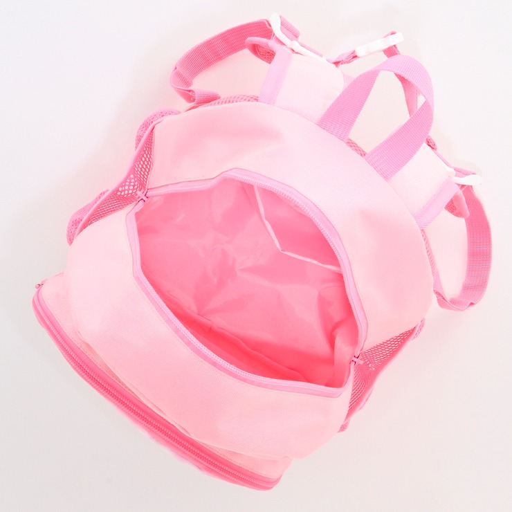 小さな妖精「ティニピン」がデザインされたリュック。背面は通気性に優れたメッシュ素材を使用し、クッション入りで肩の負担を軽減します。チェストベルトが付いているので肩からのずれ落ちを防げます。