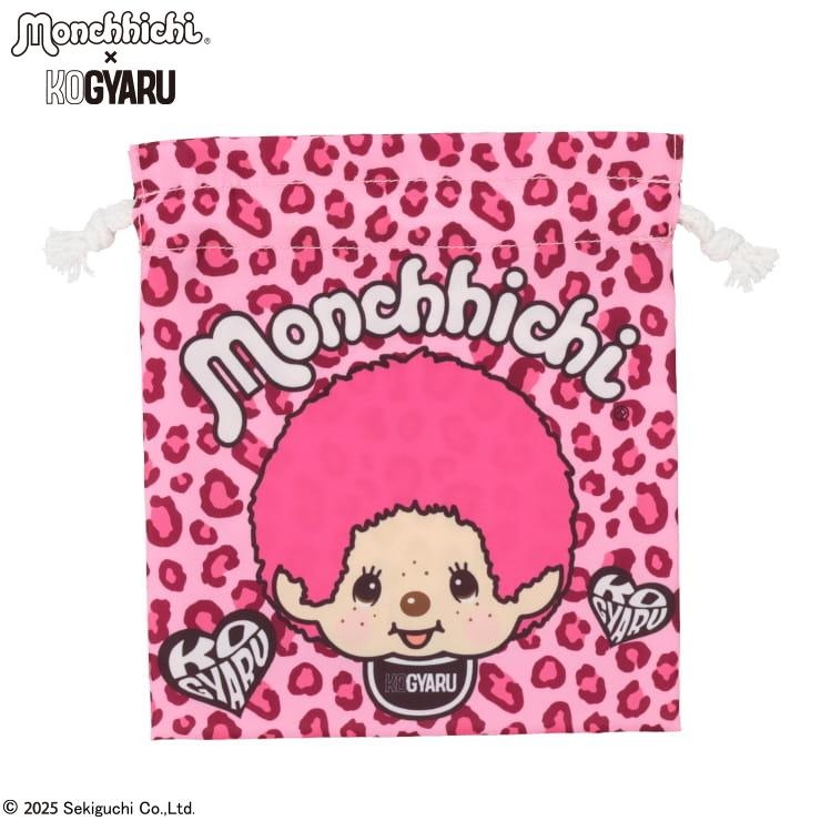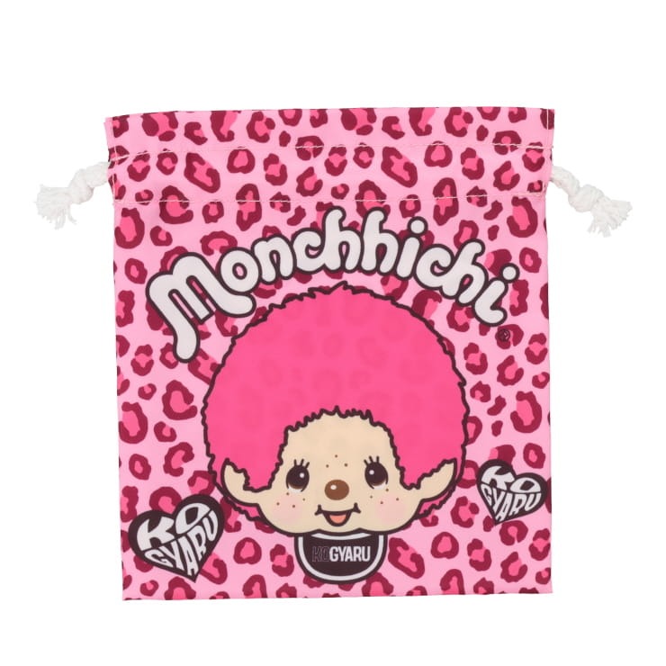 ヒョウ柄に大きなピンクのモンチッチがかわいいデザイン。