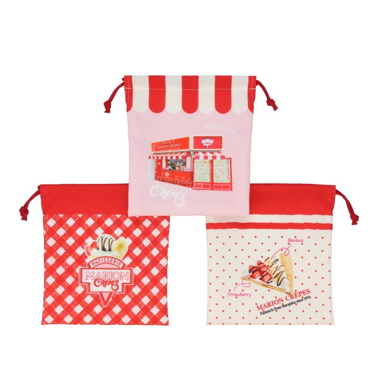 人気クレープ店「マリオンクレープ」の見ているだけで甘い気分になれる3枚組巾着。