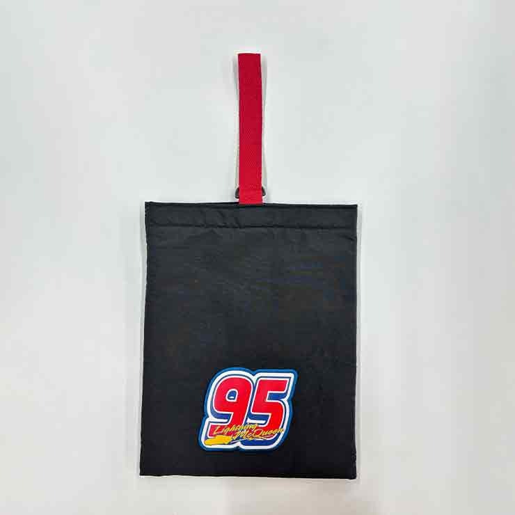 シンプルな無地デザインに合皮ロゴワッペンがアクセント。裏地の総柄を見るたびに楽しい気持ちに。