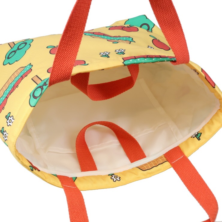 内側には吊りポケット、小さい持ち手、名前が書けるネームタグが付いています。