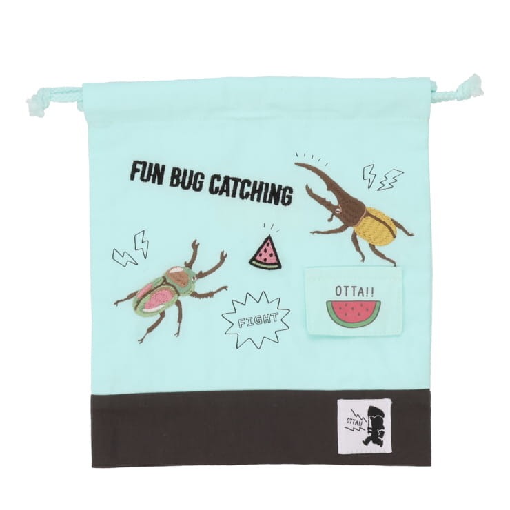 人気YouTuberむし岡さんコラボグッズが遂に登場!大人気!!ヘラクレスオオカブトとニジイロクワガタが、大好物のスイカを発見!?仕掛け付きの巾着袋になっていますよ( ^)o(^ )
