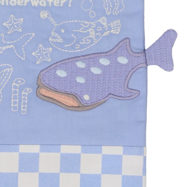 海中をイメージした海の生き物巾着袋が登場!! ジンベイザメの大きさを表現しました(^^)/