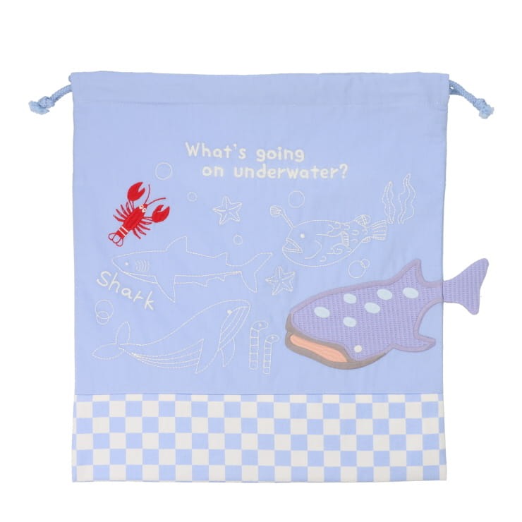 海中をイメージした海の生き物巾着袋が登場!! ジンベイザメの大きさを表現しました(^^)/