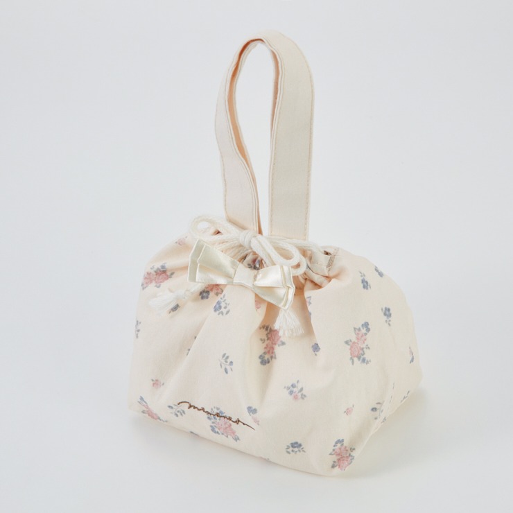花柄の生地とリボンが可愛いランチ巾着です。
