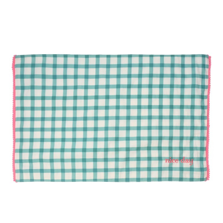 配色のポンポンレースが可愛いロゴ刺しゅう入りのランチクロス♪