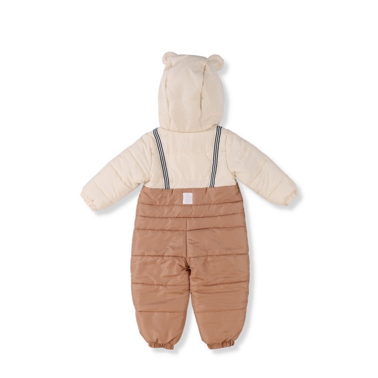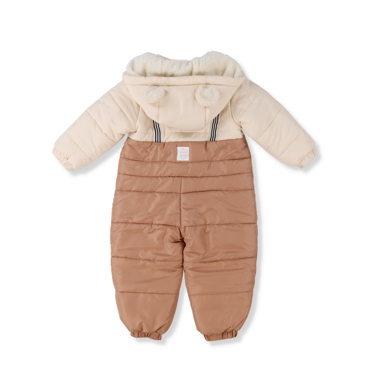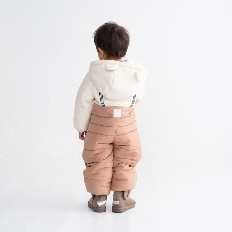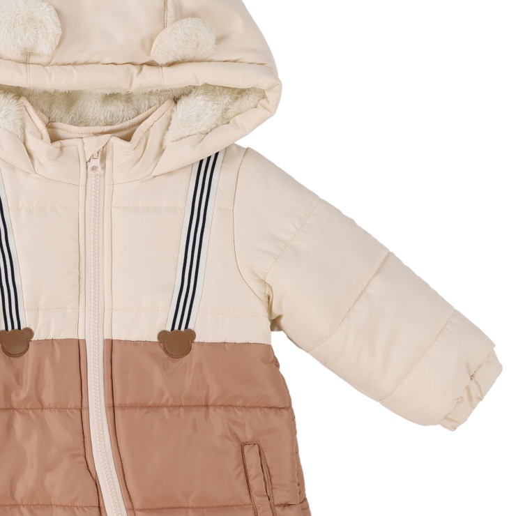 くまさんの耳がついたフード付きで全身を包んでくれる冬のお出かけの必需品です。