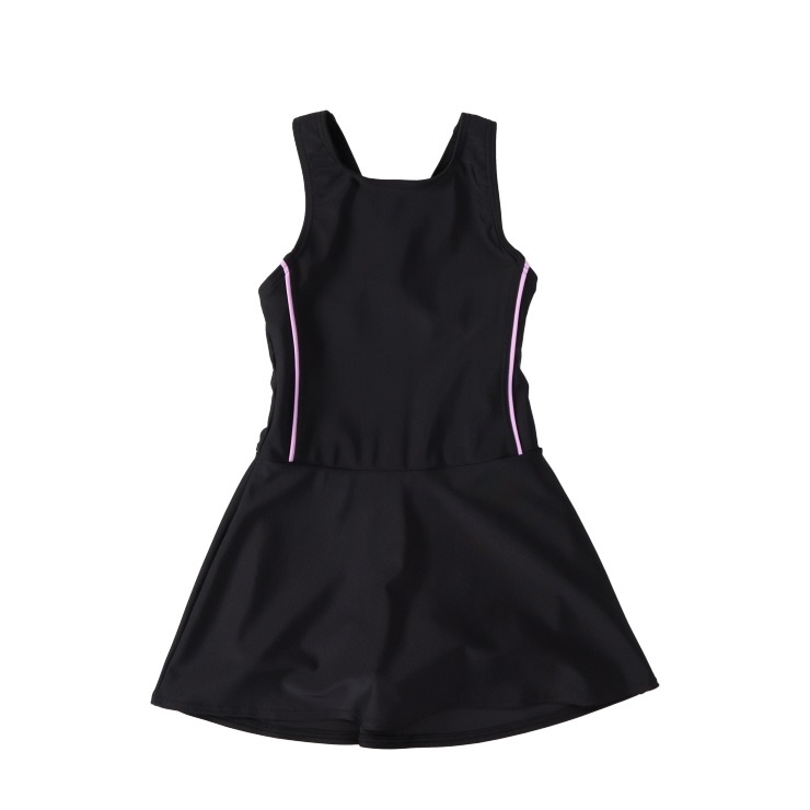 Aラインワンピースデザインで、パンツはボックスデザインになっていて、スカートが捲れてもVラインが見えない仕様になっています。