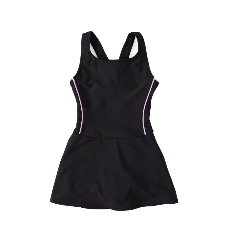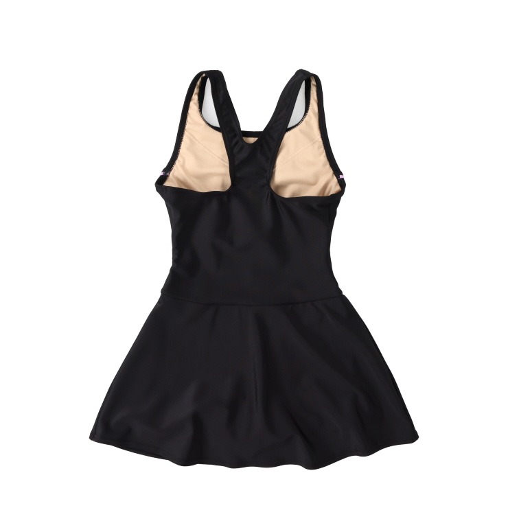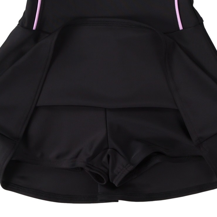 Aラインワンピースデザインで、パンツはボックスデザインになっていて、スカートが捲れてもVラインが見えない仕様になっています。