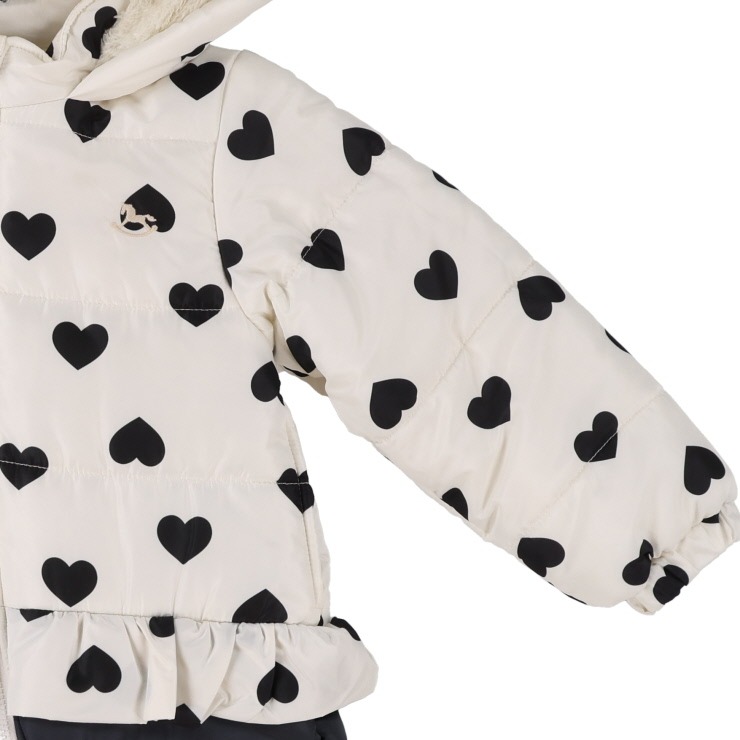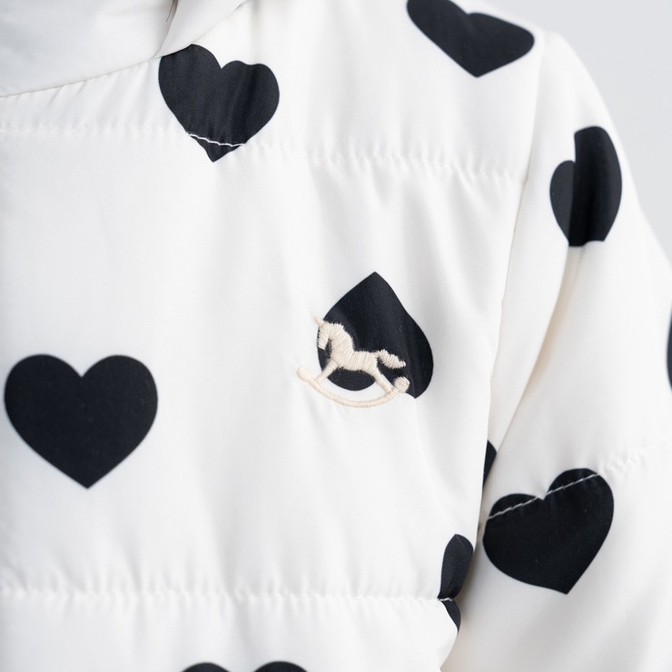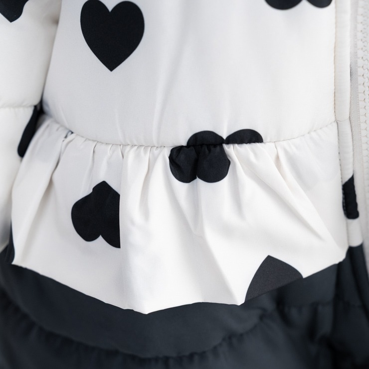 ハートがいっぱいの総柄デザインにフリルがついたかわいいデザインです。