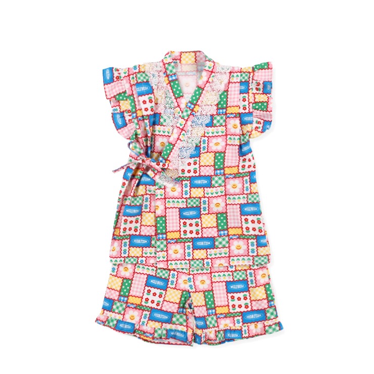 カラフルで可愛らしいパッチワークの絵柄の甚平です!