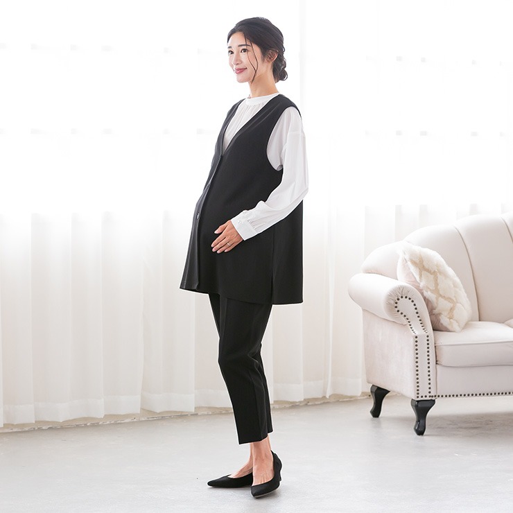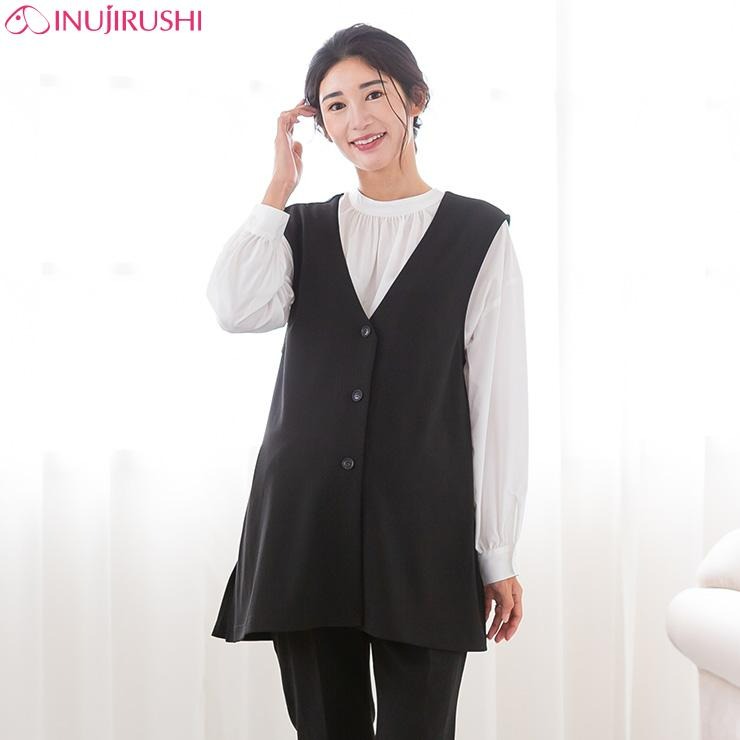 マタニティ 着やせチュニック丈ジレ(犬印)