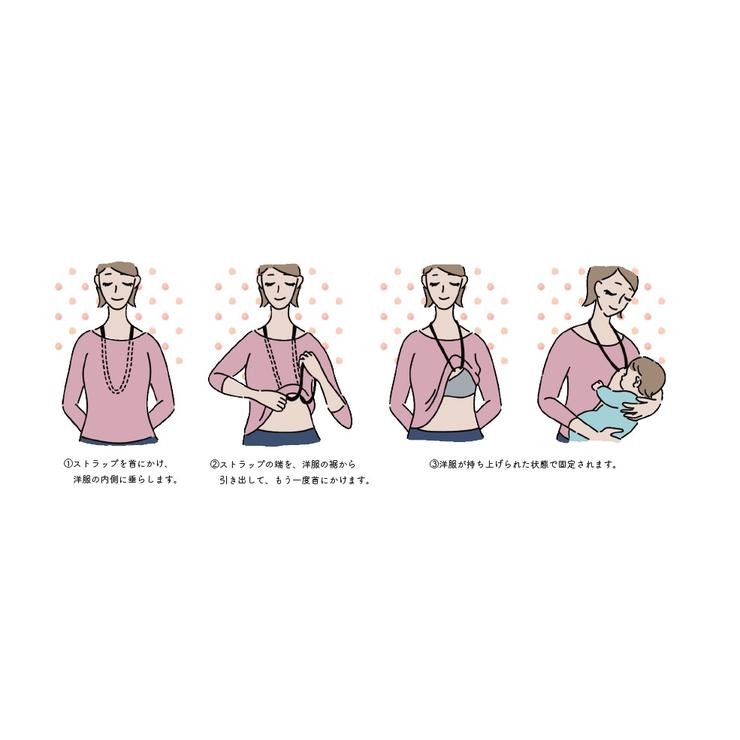 ①ストラップを首にかけ、洋服の内側に垂らします。