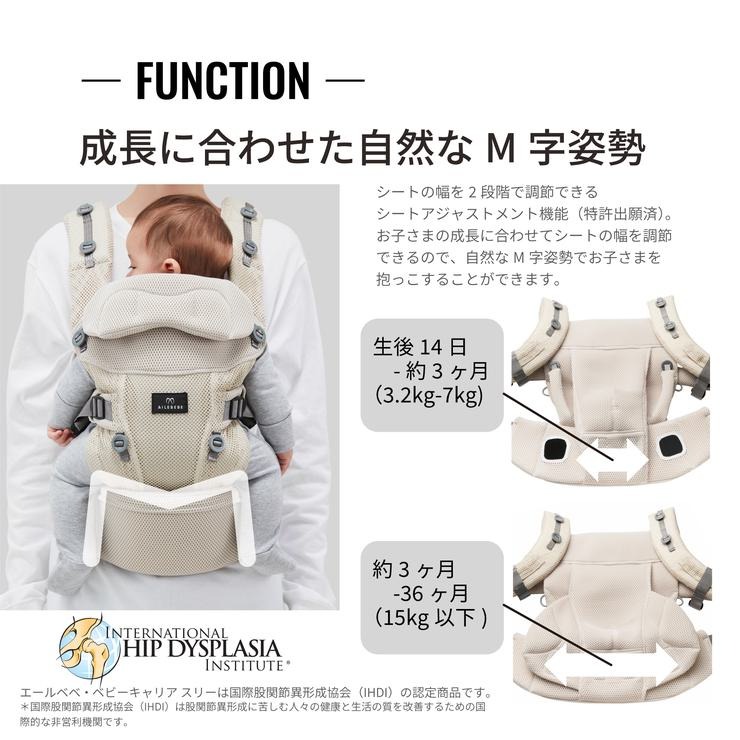 対面抱っこ:生後14日(体重3.2kg) ~24ヶ月(体重13kg)※生後14-1ヶ月まではSGマーク制度の対象外です。