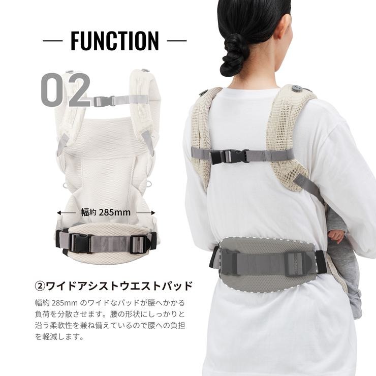 お子さまを下から支えるラクダキクッションを装備。柔らかさとしっかりとした形状を両立した発泡ウレタン製のクッションにより、ママパパの肩腰への負担を軽減させます。 また、よりラクにお子さまを抱き上げることができます。