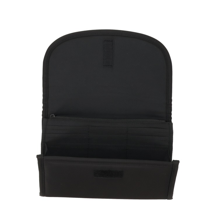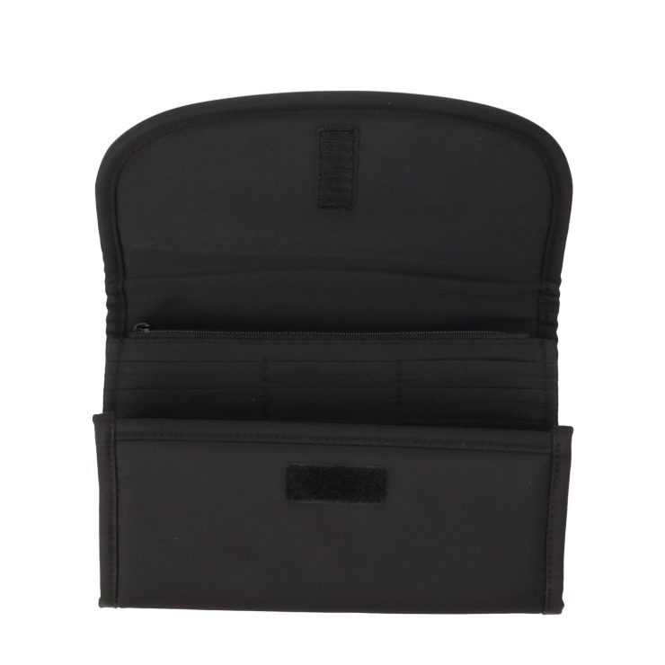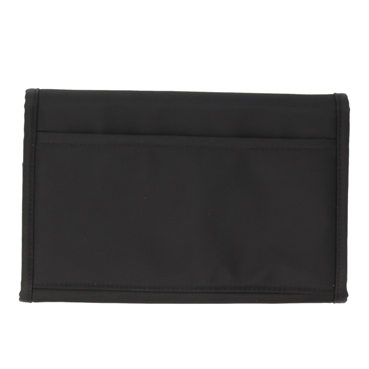 オープンポケット2個、ファスナーポケット1個、透明ポケット1個が付いており、