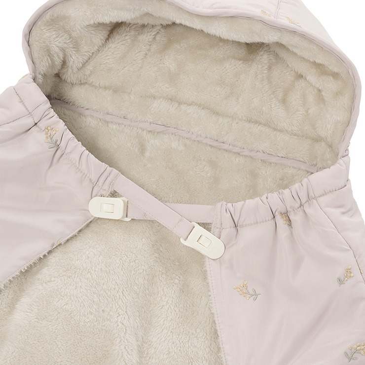 裏地にはボアフリース素材を使用しており、赤ちゃんを冬の寒さから守ります。