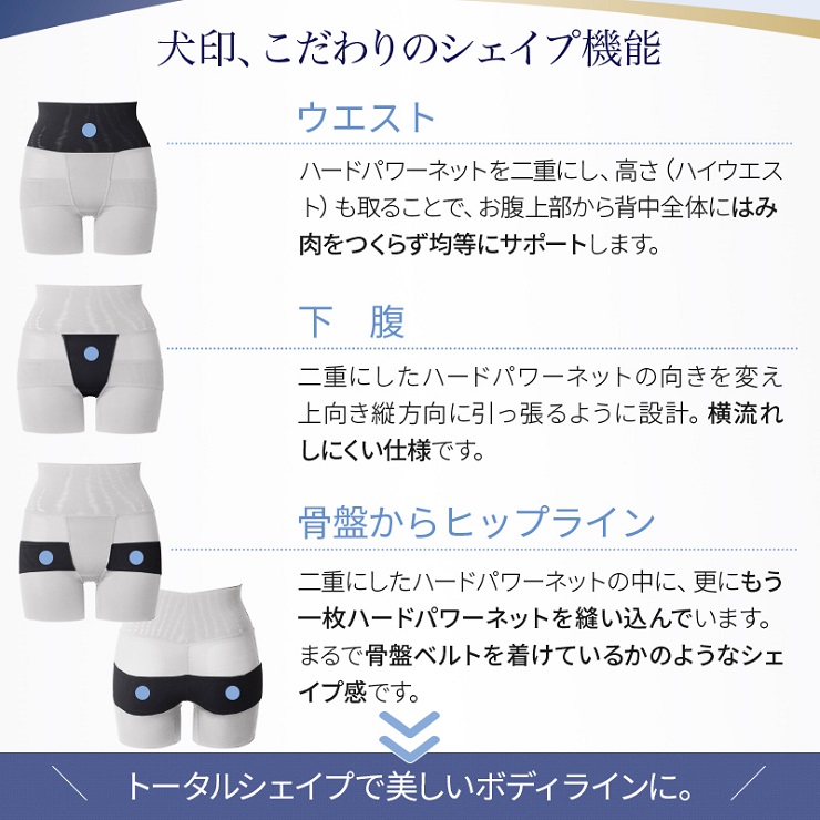 ・下腹もヒップもしっかりシェイプするパワーネットをウエストと 骨盤回りに配したリフォームガードル。