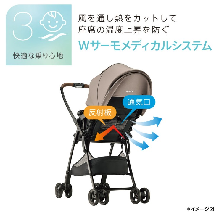 ●アップリカの「カルーンエアー メッシュ AC」は、生後1か月から使える両対面A形ベビーカー。