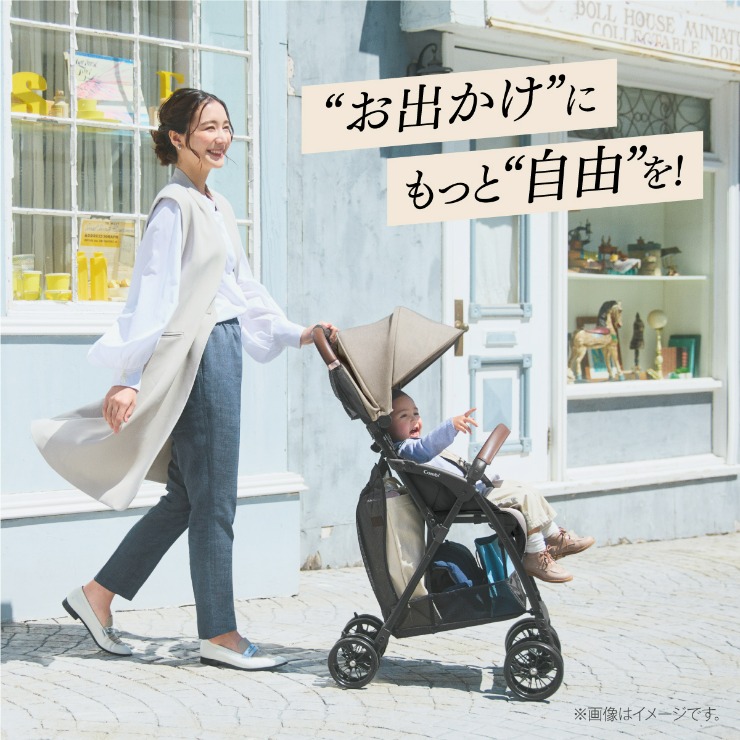 ●持ちカルグリップ搭載で、ベビーカーを脇に抱えてラクに持ち運びできます。